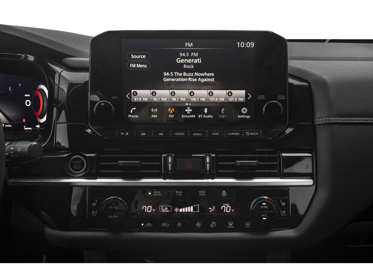 - Radio w/Seek-Scan, Clock, Speed Compensated Volume Control, Steering Wheel Controls and NissanConnect External Memory Control
