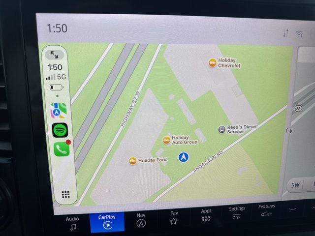- SYNC 4 w/Enhanced Voice Recognition -inc: 12" LCD capacitive touchscreen w/swipe capability, information on demand panel, wireless phone connection, cloud connected, AppLink w/app catalog, 911 Assist, Apple CarPlay and Android Auto compatibility, digital owner's manual, conversational voice command recognition and connected navigation w/complimentary 1-year trial for eligible vehicles that begins on the new vehicle warranty start date, Customers must unlock the navigation service trial by activating the eligible vehicle w/a FordPass member account, If not subscribed by the end of the complimentary period, the connected navigation service will revert to a moving-map and active routing will no longer be available, Connected service and features depend on compatible AT&T network availability, Evolving technology/cellular networks/vehicle capability may limit functionality and prevent operation of connected features, FordPass app, compatible w/select smartphone platforms, is available via a download, Message and data rates may apply